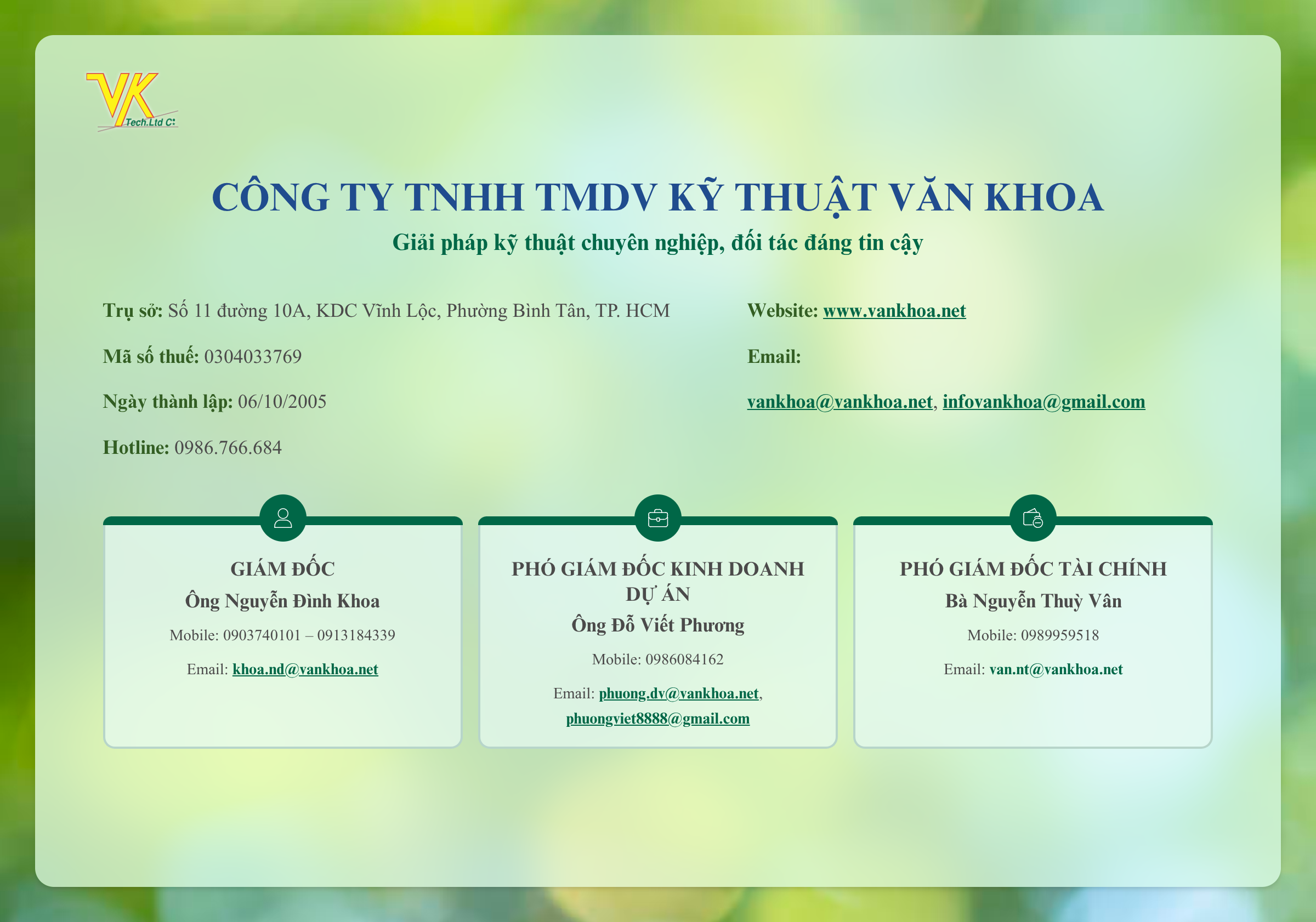Công ty Văn Khoa chúng tôi đủ năng lực, sẵn sàng đáp ứng nhu cầu của khách hàng về quy mô dự án, chất lượng và thời gian hoàn thành. Chúng tôi cũng sẵn sàng tư vấn cho quý khách những giải pháp về công nghệ, kỹ thuật hiệu quả cho dự án của quý khách.